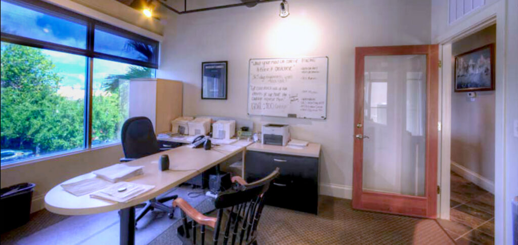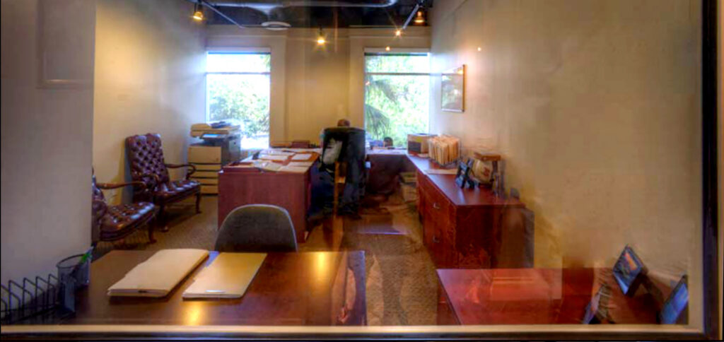 Front corner office which faces east towards South Howard with a view of downtown Tampa. It is a very private office and has roughly 230 square feet.